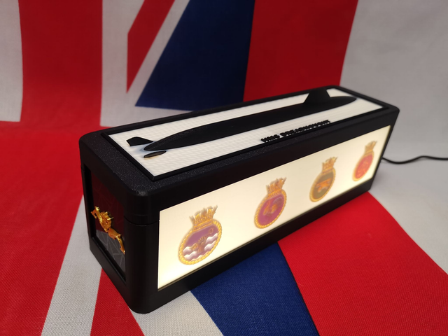 Dreadnought class crests on the front panel, dolphins on the sides and Dreadnought model at the waterline on top.